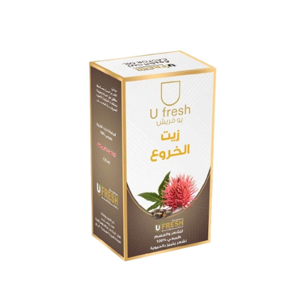 U Fresh Castor Oil for Hair and Body is 100% natural. A natural vegetable oil extracted from castor seeds, known for its many benefits for hair and skin care. It contains a group of beneficial fatty acids such as ricinoleic acid, which helps promote hair growth and moisturize the skin. This effective oil is used in many home and beauty treatments thanks to its nourishing and stimulating properties. Benefits and features It contains ricinoleic acid, which stimulates hair growth and increases its density. Provides intense hydration to hair and skin, helping prevent dryness and breakage. It helps strengthen hair follicles and reduces hair loss. It enhances skin elasticity and improves its overall appearance. It has antibacterial and antifungal properties, which helps maintain healthy scalp and skin. Makes hair softer, shinier and easier to manage. It has soothing properties that help reduce irritation and redness.