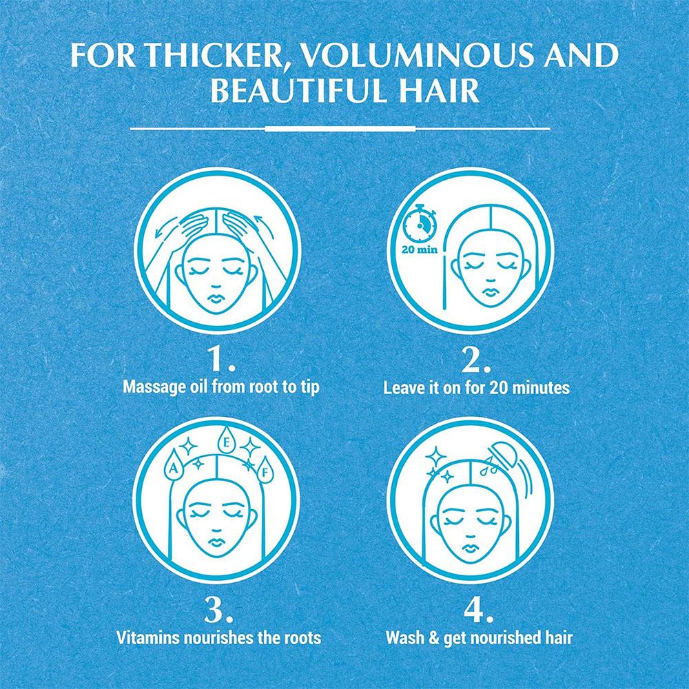 Use your fingertips to gently massage the hair oil onto the scalp and hair strands.
