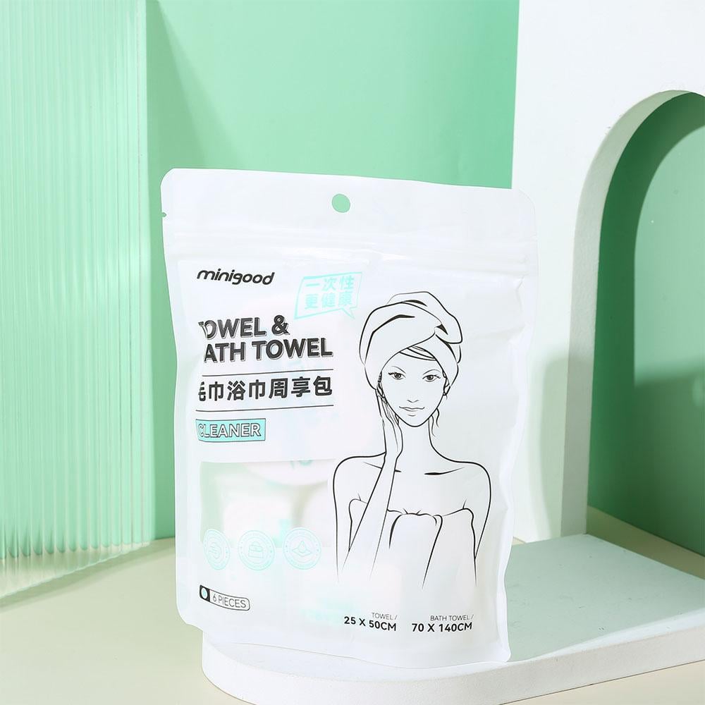 Minigood offers a cotton compressed towel set that includes 4 washcloths and 2 bath towels. This set is compact to save space and make it easy to carry, making it ideal for travel and everyday use. Made from high-quality natural cotton, these towels provide ultra-softness and high absorbency, making them ideal for post-shower skin and hair care. Benefits and features Made of 100% cotton. Very soft and absorbent. Small, lightweight and compact. Easy to carry anywhere. Perfect for on-the-go use. Comes with a convenient carrying case.