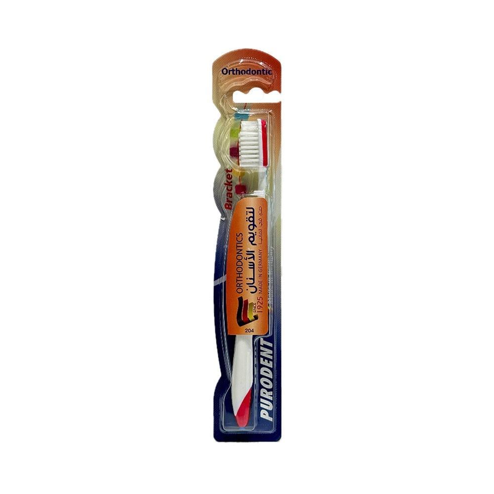 Puredent orthodontic toothbrush is specially designed to effectively clean teeth and gums for people wearing braces. This brush features soft bristles that are spaced to reach around the braces, helping to remove plaque and tartar and maintain oral hygiene.
