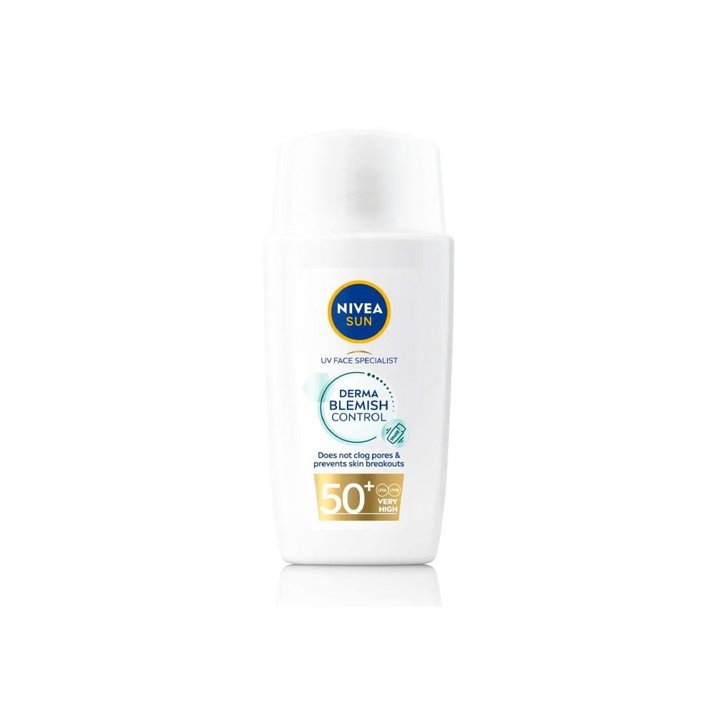 NIVEA SUN Fluid Face Cream for Sun Protection and Blemish Control SPF 50 is an innovative face cream from NIVEA that is specially formulated to provide high skin protection from harmful sun rays while controlling blemishes and shine. It features a lightweight, non-greasy formula that absorbs quickly, making it ideal for daily use. This cream contains an anti-blemish complex that helps reduce the appearance of spots and blemishes, while providing effective UVA/UVB protection. It also doesn't clog pores, making it suitable for oily and acne-prone skin.
