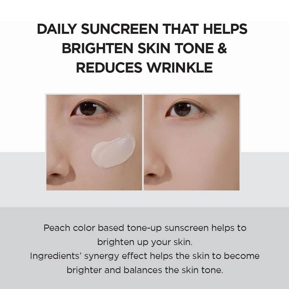 High sun protection Provides broad spectrum UVA and UVB protection with SPF50+, protecting the skin from sun damage. Brightens and evens skin tone Contains ingredients such as Niacinamide and Tranexamic Acid which help reduce pigmentation and even out skin tone, giving you a radiant and even appearance. Soothes and hydrates the skin Centella Asiatica extract soothes and deeply hydrates irritated skin, improving its elasticity and overall appearance. Light and fast-absorbing texture Its light creamy formula absorbs quickly without leaving any greasy residue, making it suitable for daily use and under makeup. Suitable for all skin types Tested to suit all skin types, including sensitive and oily skin. Free from harmful ingredients It does not contain ingredients that may cause skin irritation, such as artificial fragrances or colors, making it a safe choice for daily use. Improves skin elasticity Contains adenosine, which helps enhance skin elasticity and reduce the appearance of fine lines and wrinkles.