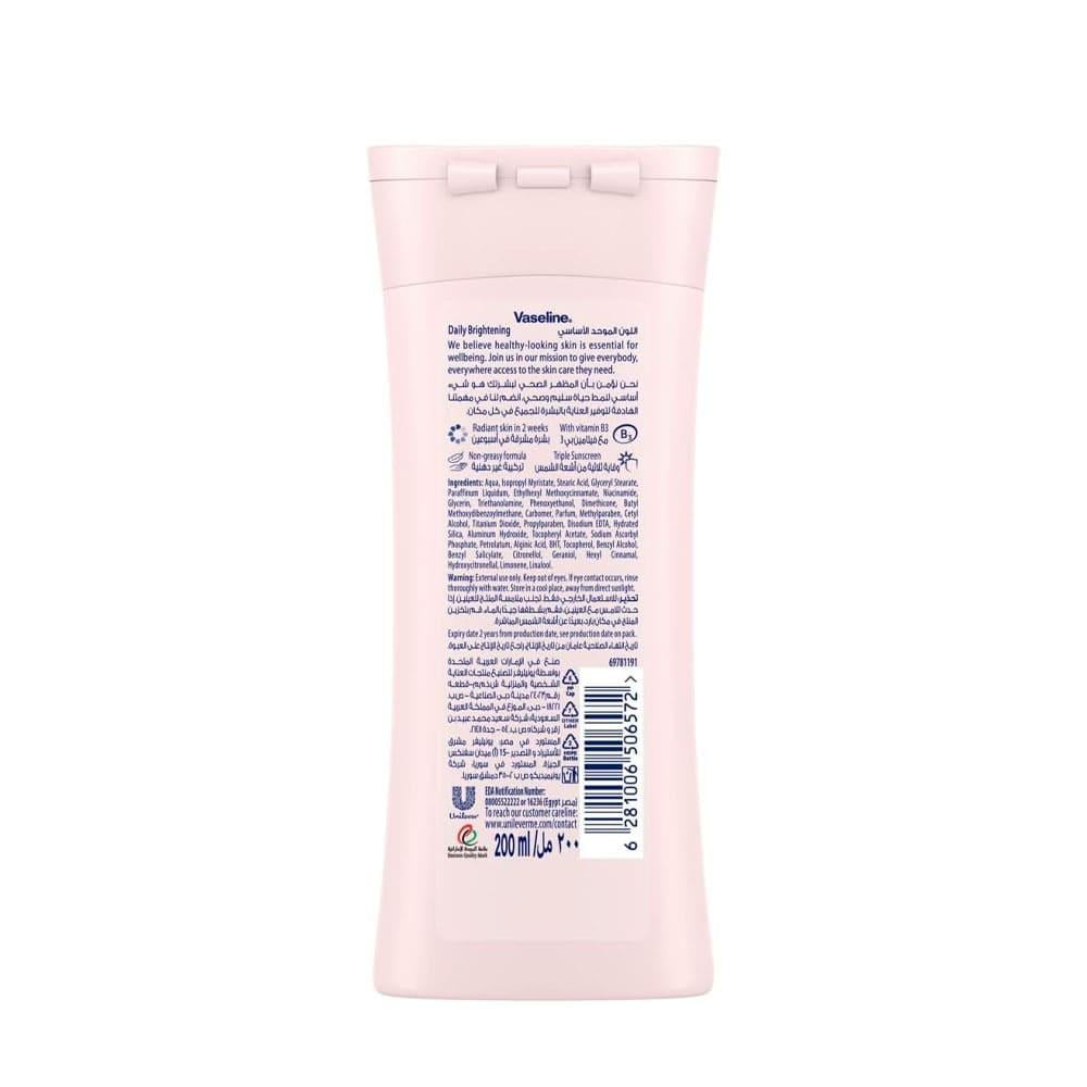 Helps even out skin tone and reduce discoloration Contains Vitamin B3 and natural antioxidants Provides long-lasting hydration Includes Vaseline jelly drops to restore skin softness Lightweight and fast-absorbing formula Convenient 200ml size